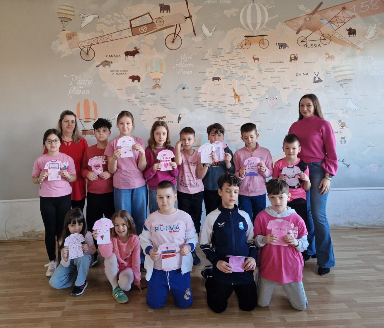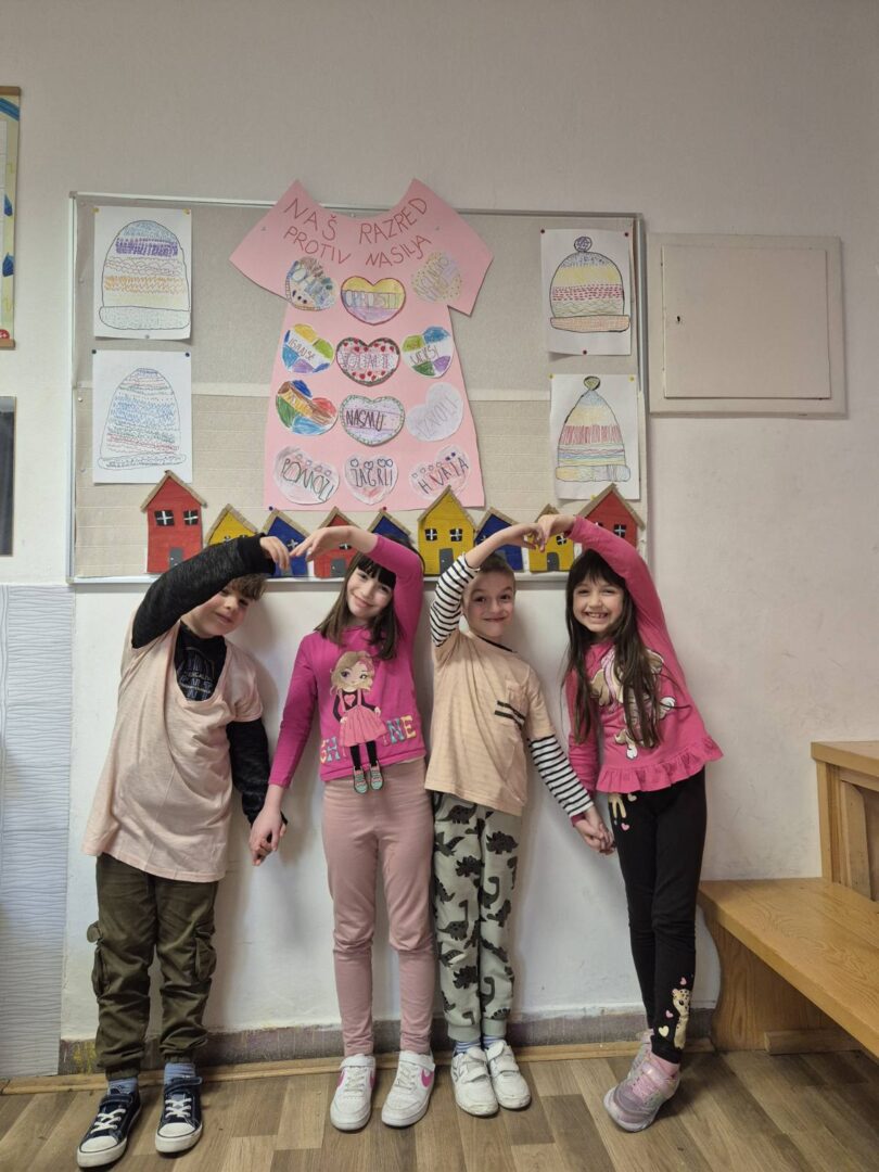 I ove smo godine, posljednje srijede u veljači, u našoj školi obilježili Dan ružičastih majica. U znak podrške borbi protiv vršnjačkog nasilja učenici i djelatnici odjenuli su ružičastu boju te tako poslali snažnu poruku zajedništva i tolerancije. Tijekom cijelog tjedna na satima razredne zajednice sudjelovali smo u kreativnim radionicama. Školska knjižnjičarka je također provela radionicu čiji je rezultat pano pod nazivom “Kindness is my cup of tea” ili “Dobrota je moj izbor”