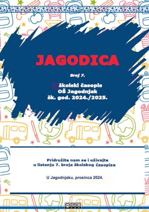 JAGODICA Školski e – časopis Jagodica 7 Školska godina 2024./2025. PROČITAJ Jagodica 5-6 Školska godina 2023./2024. PROČITAJ Jagodica 4 Školska godina 2022./2023. PROČITAJ Jagodica 3 Prvo obrazovno razdoblje školske godine 2022./2023. PROČITAJ Jagodica 2 Školska godina 2021./2022. PROČITAJ JAGODICA-e-časopisClick to read this book, made with Book Creatorread.bookcreator.com Jagodica 1 Školska godina 2020./2021. PROČITAJ