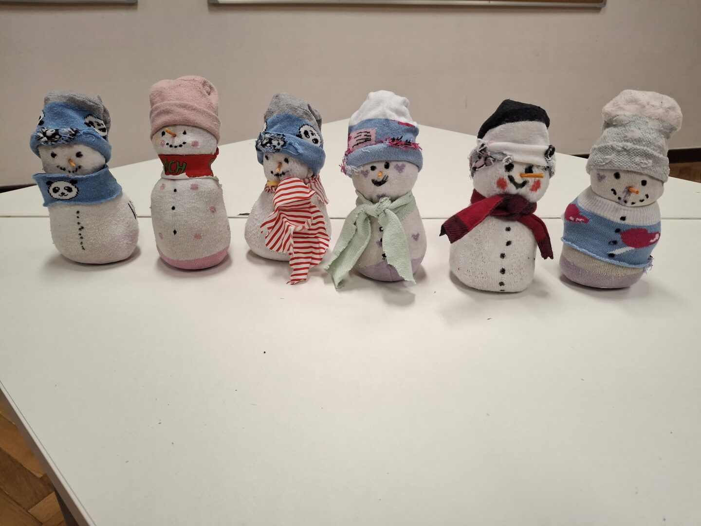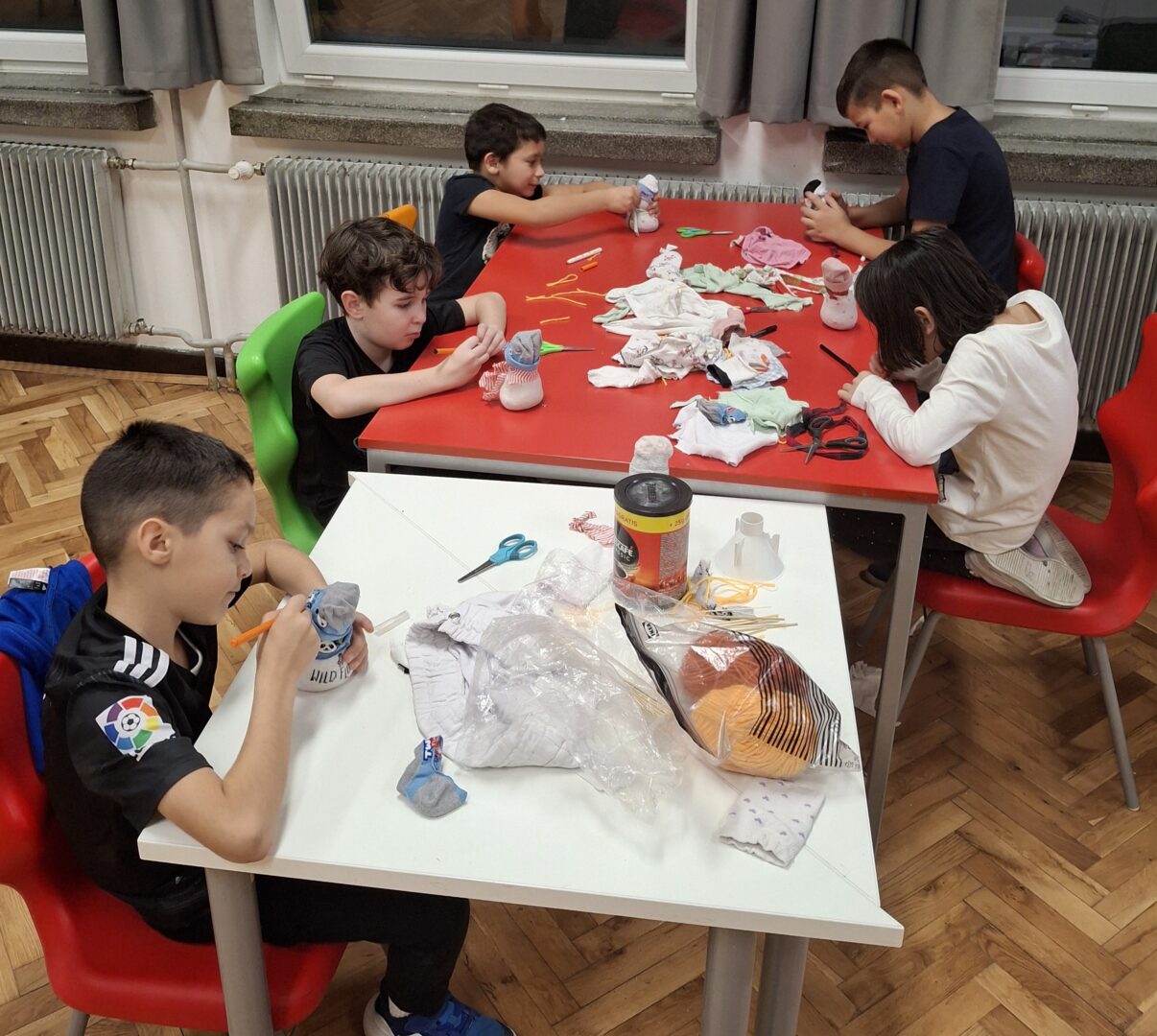 Učenici 2. a razreda, zajedno sa svojom učiteljicom Majom Predmerski, sudjelovali su u kreativnoj i ekološki osviještenoj radionici izrade snjegovića od starih čarapa. Uz puno mašte i veselja rezali su dijelove čarapa, punili ih komadićima tekstila te krojili kapice, šalove i kaputiće za svoje male snježne prijatelje. Posebnu pažnju posvetili su detaljima – ucrtavali su oči i usta te svakom snjegoviću dodali osmijeh koji je uljepšao učionicu.