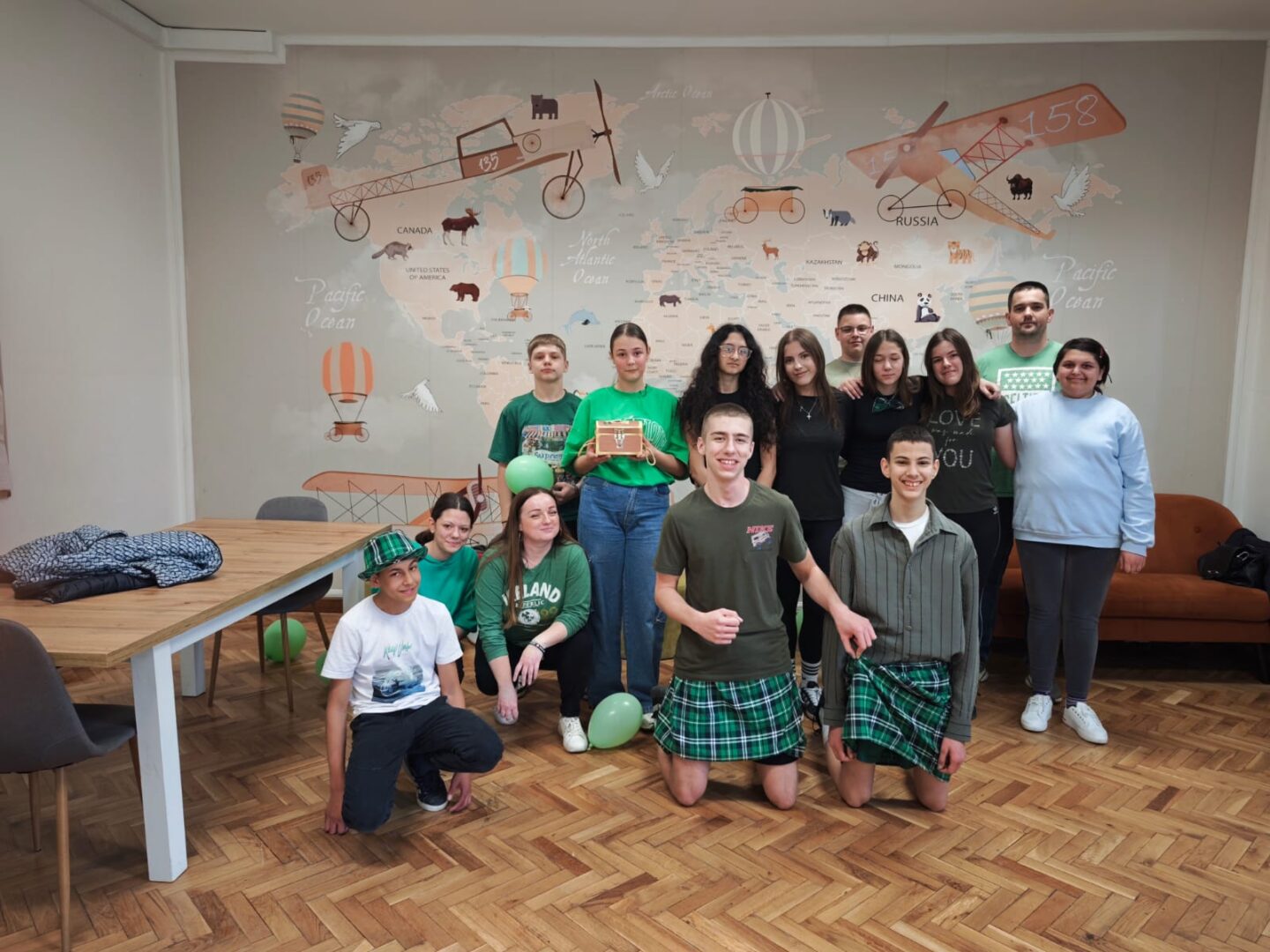 Учествовали су у квизу, потрази за благом и другим играма, а на крају су се почастили слаткишима украшеним препознатљивом зеленом бојом, симболом овог празника и доласка пролећа. Кроз овакав приступ настави ученици су на занимљив и интерактиван начин проширили своја знања и додатно развијали језичке вештине, негујући притом тимски рад и креативност.