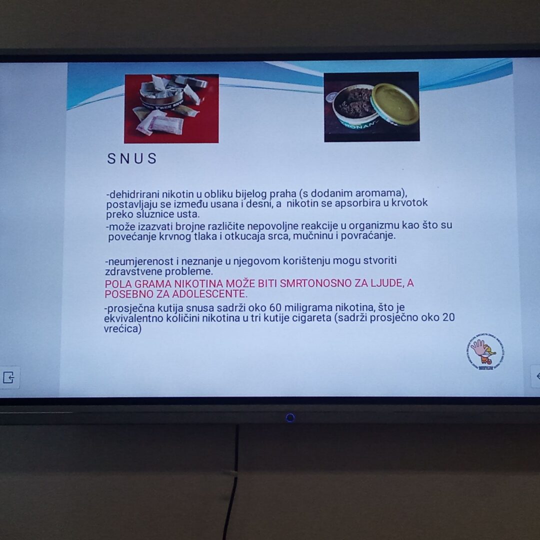 У оквиру националног пројекта „Здрав за пет“ у матичној школи је 7. новембра 2025. године за ученике седмих и осмих разреда одржано предавање под називом „Алкохол, вандализам и насиље међу младима“. Предавање је одржао господин Роберт Шкорвага, представник Полицијске управе осјечко-барањске. Кроз разговор са ученицима, предавањем се указало на проблеме конзумирања алкохола, неприхватљивог и лошег понашања у друштву, као и на све чешћу појаву насиља међу младима.Због забрињавајућег раста конзумирања цигарета, алкохола и опојних средстава, потреба за оваквим едукацијама и приказивањем стварних статистика и примера од изузетног је значаја, а рад на превенцији представља задатак целе заједнице.